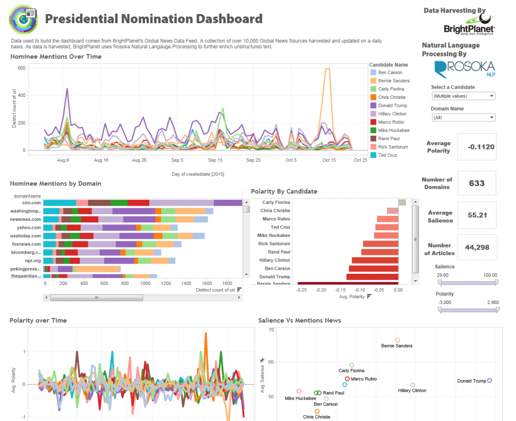 The political campaigns are dominating the public consciousness, but BrightPlanet and Rosoka’s technologies can help anyone use large amounts of Web data to better understand public opinion.